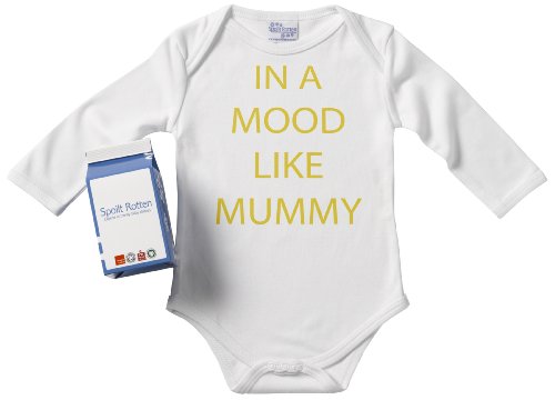 Spoilt Rotten - In A Mood Like Mummy Babygros / Bodysuit Alternative Baby Clothes 100% Organic Sizes 0-6 months + in funky Milk Carton WHITE