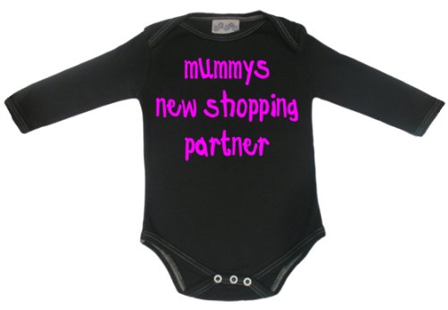 Spoilt Rotten - Mummys New Shopping Partner Long Sleeve Babygros / Bodysuit Alternative Baby Clothes 100% Organic Sizes 0-6 months WHITE/BLACK