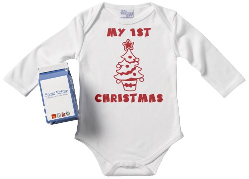 Spoilt Rotten - My 1st Christmas Christmas Baby Bodysuit Gift Funny Slogan 100% Organic Sizes 6-12 months WHITE/BLACK WHITE