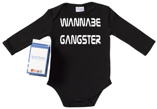 Spoilt Rotten - Wannabe Gangster Long Sleeve Babygrows / Bodysuit Alternative Baby Clothes 100% Organic Sizes 0-6 months in funky Milk Carton BLACK