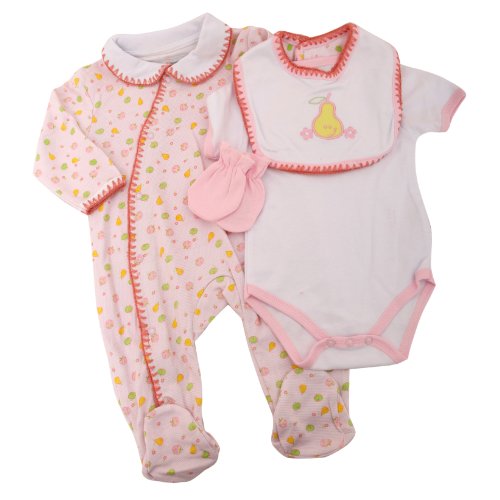 Baby Girl 4 Piece Gift Set, Fruit Design Baby Clothing Gift Set (0-3 Months) (Pink And White)