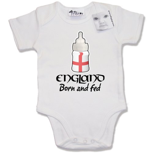 Dirty Fingers - England Born and Fed - Baby & Toddler Short Sleeve Bodysuit / BabyGrow, 0-3 months, White