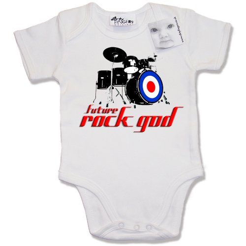 Dirty Fingers - Future Rock God (Mod Drums) - Baby & Toddler Short Sleeve Bodysuit / BabyGrow, 3-6 months, White