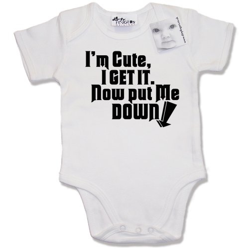 Dirty Fingers - I'm cute, I get it. Now put me Down. - Baby & Toddler Short Sleeve Bodysuit / BabyGrow, 0-3 months, White