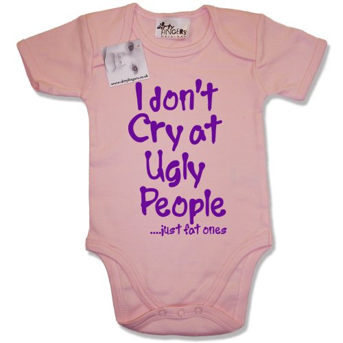 Dirty Fingers - I don't Cry at Ugly People....just fat ones - Baby & Toddler Short Sleeve Bodysuit / Baby Grow, 0-3 months, Pink