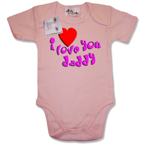 Dirty Fingers - I love you Daddy - Baby & Toddler Short Sleeve Bodysuit / BabyGrow, 0-3 months, Pink