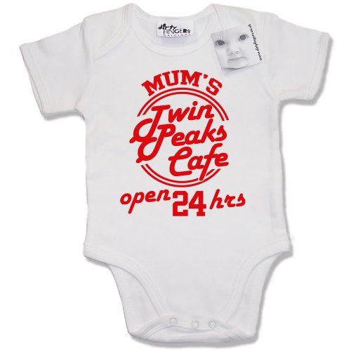 Dirty Fingers - Mum's Twin Peaks Café open 24 hrs - Baby & Toddler Short Sleeve Bodysuit / BabyGrow, 0-3 months, White