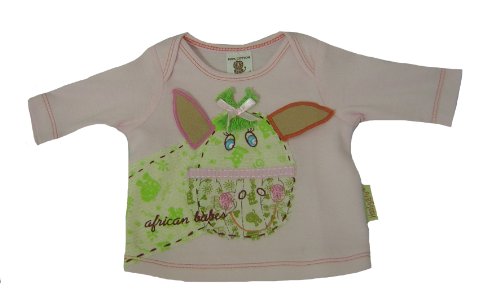 Ethically made in South Africa from 100% fair trade African cotton. A perfect gift. This super soft long sleeve cotton tee is georgous with the applique giraffe in contrasting cotton fabric, felt ears and green cotton tuft. The tee is pale pink and has contrasting stitching on hems.