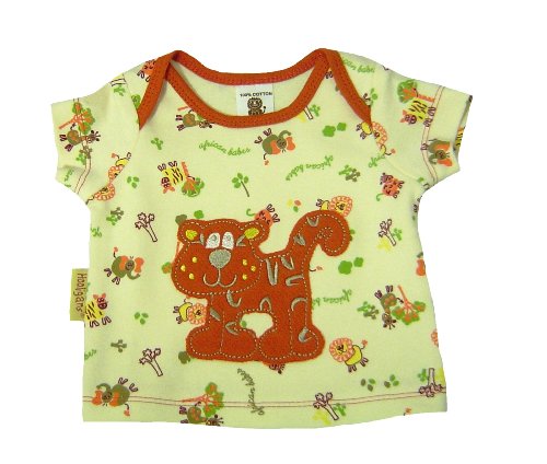 Ethically made in South Africa from 100% African cotton. This lovely super soft cotton baby short sleeve tee is perfect for the summer. It has an envelope neck for easy dressing and changing and a really cute embroidered and applique leopard on the front.