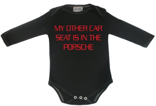 Spoilt Rotten - My Other Car Seat Is In The Porsche Long Sleeve Babygrows / Bodysuit Alternative Baby Clothes 100% Organic Sizes 0-6 months WHITE/BLACK