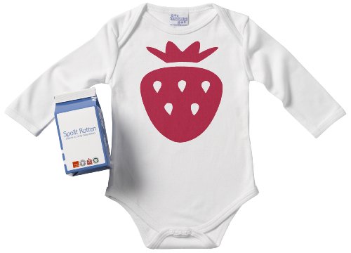 Spoilt Rotten - Strawberry Long Sleeve Babygrows / Bodysuit Alternative Baby Clothes 100% Organic Sizes 0-6 months + in funky Milk Carton WHITE