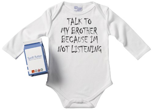 Spoilt Rotten - Talk to My Brother Because I'm Not Listening Babygrows / Bodysuit Alternative Baby Clothes 100% Organic Sizes 0-6 months + in funky Milk Carton WHITE