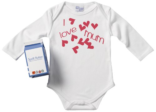 Spoilt Rotten - I Love Mum Long Sleeve Babygrows / Bodysuit Alternative Baby Clothes 100% Organic Sizes 0-6 months + in funky Milk Carton WHITE