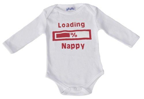 Spoilt Rotten - Loading Nappy Long Sleeve Babygrow / Bodysuit Funny Slogan 100% Organic Sizes 6-12 months WHITE/BLACK