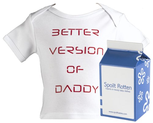 Spoilt Rotten - Better Version Of Daddy Baby & Toddler Retro T-Shirt 100% Organic Sizes 0-6 months in funky Milk Carton WHITE