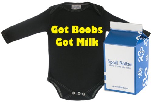 Spoilt Rotten - Got Boobs Got Milk Long Sleeve Babygrows / Bodysuit Alternative Baby Clothes 100% Organic Sizes 0-6 months WHITE/BLACK in funky Milk Carton