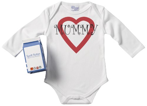 Spoilt Rotten - Love Mummy Long Sleeve Babygros / Bodysuit Alternative Baby Clothes 100% Organic Sizes 0-6 months + in funky Milk Carton WHITE