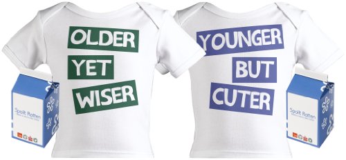 Spoilt Rotten - Older Yet Wiser And Younger But Cuter Twin Set Baby & Toddler Retro T-Shirt 100% Organic Sizes 0-6 months + in funky Milk Carton WHITE