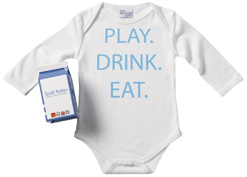 Spoilt Rotten - Play. Drink. Eat. Long Sleeve Babygro / Bodysuit Organic Baby Clothing 100% Organic Sizes 12-18 months + in funky Milk Carton WHITE