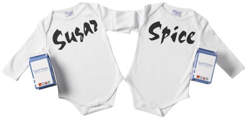 Spoilt Rotten - Sugar And Spice Twin Set Babygrows / Bodysuit Alternative Baby Clothes 100% Organic Sizes 0-6 months + in funky Milk Carton WHITE